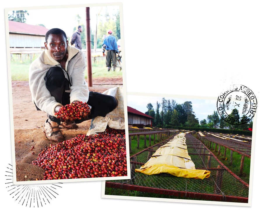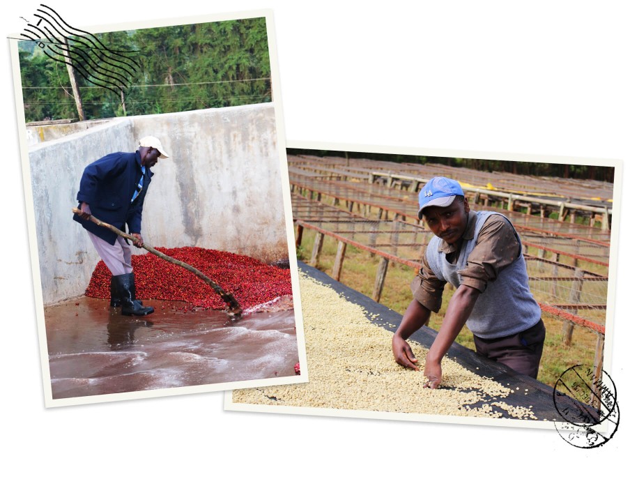 Aufbereitet wird der Kaffee im klassischen kenianischen Washed-Verfahren. Nach dem Entpulpen folgen Fermentation, ausgiebiges Waschen, ein längeres Wasserbad und das Trocknen auf erhöhten Tischen. Dabei wird der Kaffee regelmässig gewendet und sortiert. Nachhaltige Massnahmen wie natürliche Filtergruben sorgen für eine umweltfreundliche Wasseraufbereitung. Das Ergebnis sind saubere, klare und lebendige Tassenprofile.
